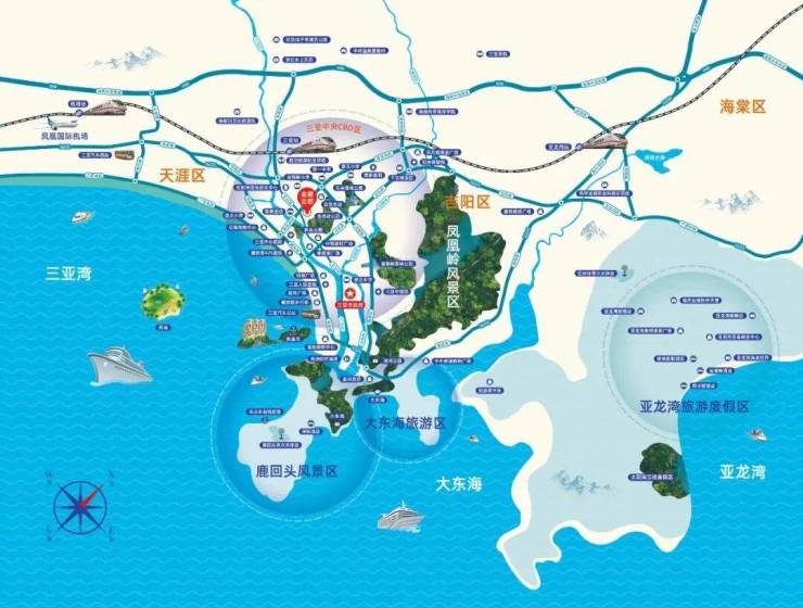 项目近临金鸡岭路、三亚河东路;城市中轴线凤凰路、鹿城大道穿梭而过;城市主干道迎宾路、解放路、落笔洞路、三亚湾路等交通网络;2公里三亚动车站,5公里环岛高速出入口,10公里凤凰机场,城市轻轨及多条公交路线停靠。立体交通网络,出行便捷无忧。