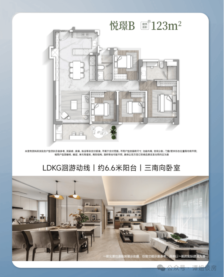 LDKG洄游动线,三南向卧室,悦享四季,厅卧空间灵活改造,连接约6.7米阳台,适配全生命周期,半开放式中西厨房,多样生活随心而动,玄关大通柜+走廊置物柜人性设计,轻松收纳全家兴趣。