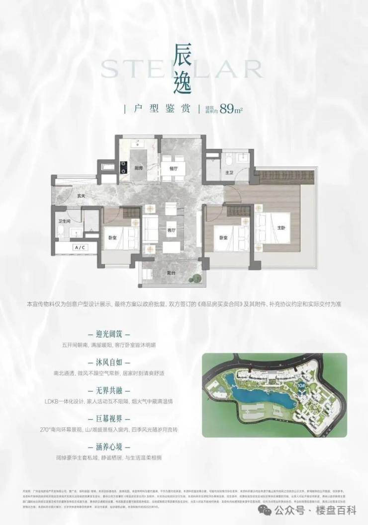 新中式岭南风格,打造特色景观空间;塔楼最高23层,其中1栋为两梯四户,其余为三梯五户,建面约62方两房,约75-88㎡三房设计;板楼最高17层,采用两梯两户设计,建面约125-128四房。