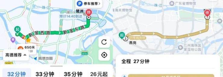 如果是去珠江新城的话,开车大概12公里,花费30分钟左右即可抵达,坐地铁的话,11号线转3号线,全程8个站,耗时29分钟左右。