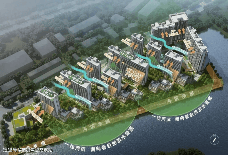 住宅产品主要以小高层和叠墅为主,其中16栋为14-16层的小高层住宅,5栋临河的4层叠墅。