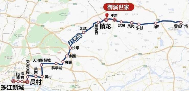 距离地铁21号线中新站(约1000米)、地铁14/21号线镇龙站(约1000米),快线3站到天河,7站到珠江新城。