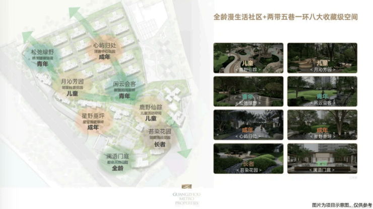 ⼴州地铁地产以“两横⼀纵”规划(地铁线为纵轴,滨江公园、商业主轴为横轴),串联学校、商业、医疗、公园,形成步⾏ 10 分钟⽣活圈,未来将导⼊超 1 万⼾家庭 + 周边产业⼈群,让⽣活提前兑现。