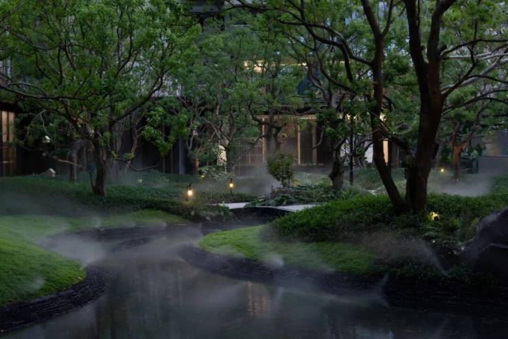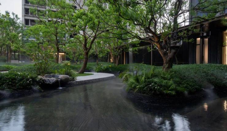 如林境“林谷行深”,就是一处主题水岸园林,蜿蜒河道两岸青葱,彷佛置身江南水乡。