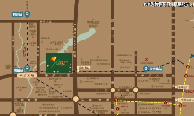 雅宝新城紧邻广州新机场快线,车程距广州市区20分钟,距花都港5分钟,小区配有多条专线往返广州、港澳之间,至香港九龙也只需2.5小时。