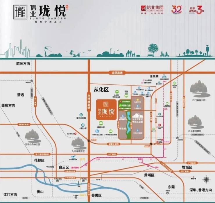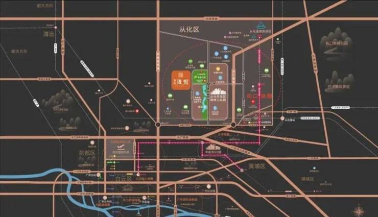 项目社区楼巴,直通14号线从化客运站地铁口、快线四站到嘉禾望岗。距离京珠、大广高速入口不足5分钟车程,到广州白云机场仅20分钟,两小时内可快速到达粤港澳大湾区主要城市。地铁14号线从化客运站距项目约9公里,未来规划中的地铁42号线将缩短至1公里,交通网络逐步完善。