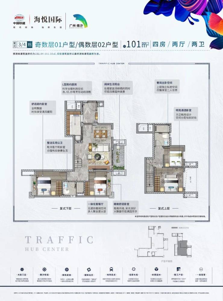 平层户型涵盖了99-131㎡/复式户型涵盖了81-101㎡三至四房,目前主要在售为复式产品更多一点,平层也还有少量尾货,整个项目已经是现楼,所见即所得!