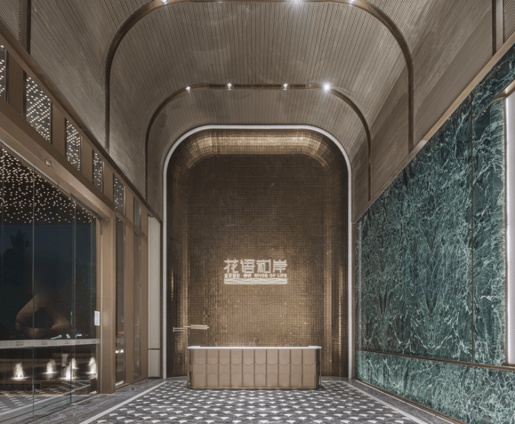 营销中心依托商业及配套用房空间,设计上以岭南文化符号为 “旧” 的基底,保留并凸显地域文化肌理,用现代设计语言做 “新” 的表达,通过视觉碰撞营造 “坐古望今” 的体验。