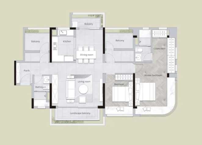 项目设计为T2户型私梯入户,保障归家尊贵感及私密性。小洋房为复式设计,下叠超大花园赠送,大面宽阳台设计;上叠大露台及天面赠送,进一步提升居住品质。