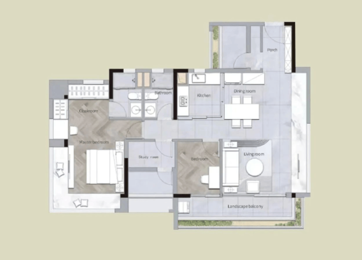 在样板房方案前期,设计管理团队经反复研讨,确定差异化设计方向:既要打破传统样板间固有模式,又要将建筑风格自然延伸至室内空间,打造独具岭南元素现代样板间。