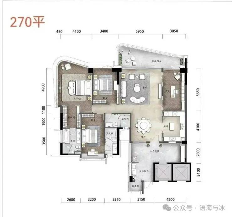 约365㎡5房双套房|2厅|4卫|3阳台+1工人套房