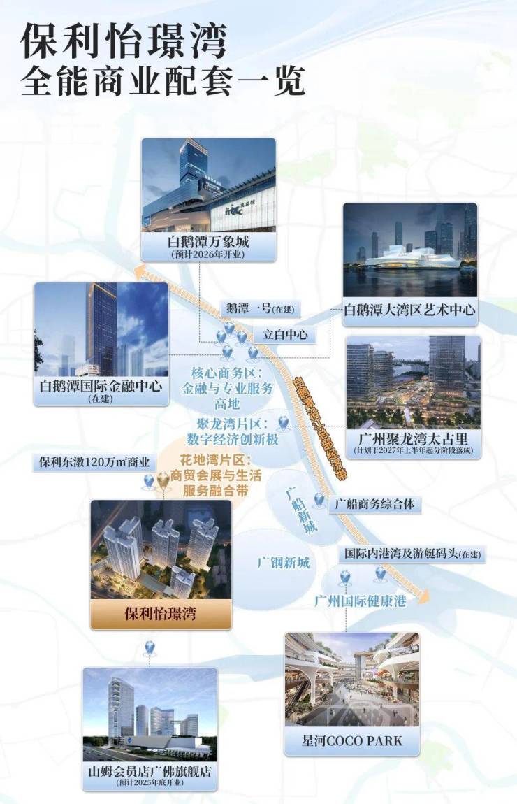 芳和荟购物广场、荔胜广百等成熟商圈步行可达。700米内理想花地商业部分开业,2公里聚龙湾太古里、万象城即将落地。项目自带约40万㎡滨水商业综合体,下楼即享便利生活。