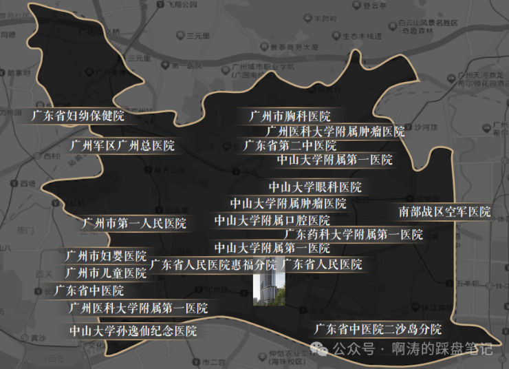 医疗中心:约20家三甲级医院,广州最多三甲医院汇聚的区域。