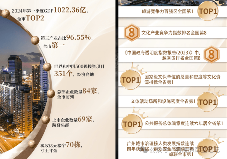 政商中心:省委市委、省市政府一直在越秀,吸引了86家世界500强企业在越秀设立总部或分支机构,仅用广州0.45%土地面积,创造广州近13%GDP。