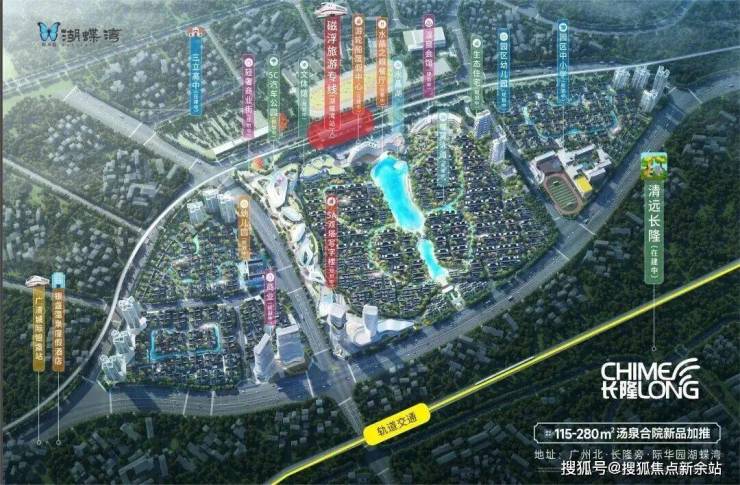 际华园湖蝶湾位于广州北、清远长隆乐园旁,总占地面积约61.22万㎡,是央企新兴际华旗下地产品牌“际华园”产品系中的文旅标杆。项目致力于打造出大湾区“微度假首选旅游目的地”,以约2.5万㎡水晶湖为核心,集温泉度假、健康养生、娱乐休闲、水上运动、高端居住、星级酒店于一体。
