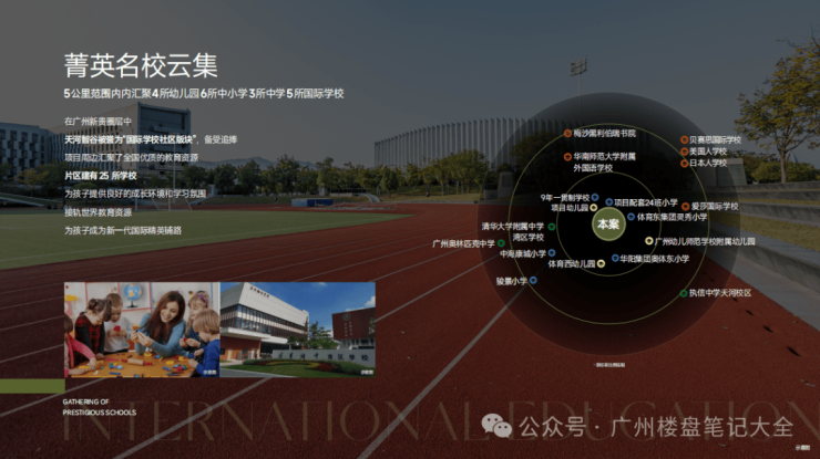 项目自配15班幼儿园和24班小学,其中24班小学引进广州天河外国语教育集团合作办学