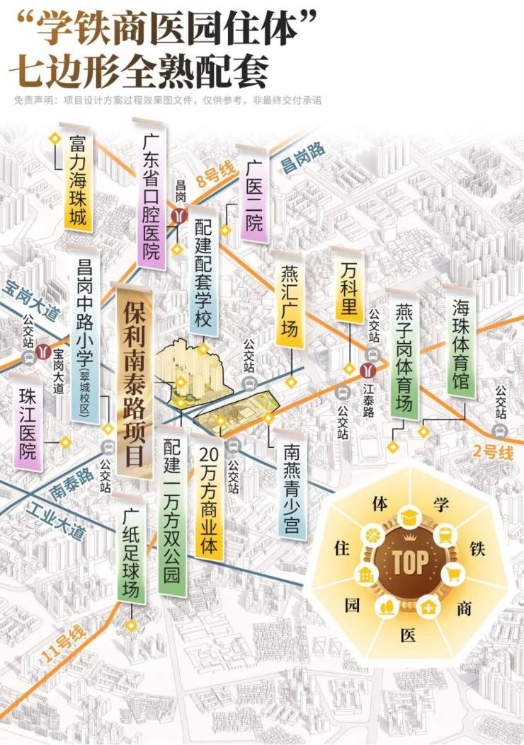• 地铁:2/11号线江泰路站(约300米)、8号线宝岗大道站(约300米)、广佛线燕岗站(约800米)