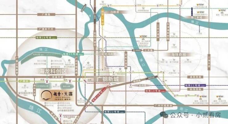 自驾:越秀·天瀛前面海龙路接驳各条高速,东接广州环城高速,西接广佛江珠高速,南接广台高速,距离荔湾核心聚龙湾约9公里,距离琶洲20公里,距离珠江新城20公里。
