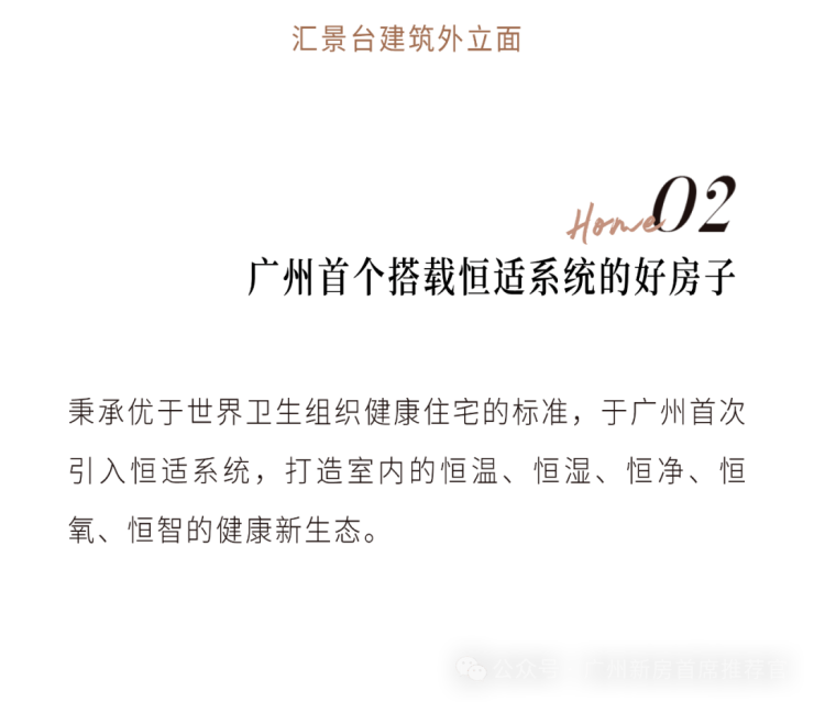 首创陶板幕墙,长期耐用兼具经典温润的美学质感;打造广州首个恒适科技健康住宅,针对回南天、夏季闷热等痛点,构建恒温、恒湿、恒氧、恒净、恒静、恒智的“六恒系统”。