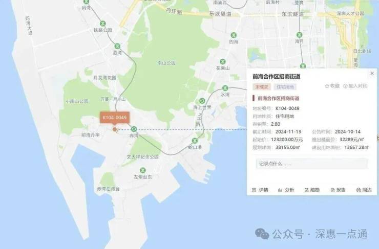 K104-0049地块位于前海合作区招商街道,无配建、户型不受限7090政策,是一块纯商品住宅开发用地。