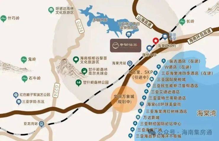 ①依山傍水,拥享1500余亩南田温泉;②出则繁华、入则鸣翠,缔造海棠湾山海度假标杆!
