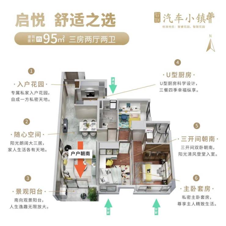 - 户型亮点:95-125㎡全南向三至四房,主打高利用率(得房率约80%),入户花园、双阳台设计,主卧带独立卫浴。