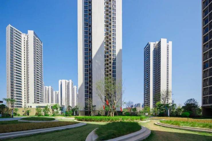 项目总占地32万㎡,总建面82万㎡,容积率2.6,绿化率35%,规划41栋住宅及公寓,总户数6200户,物业费2.8元/㎡·月。
