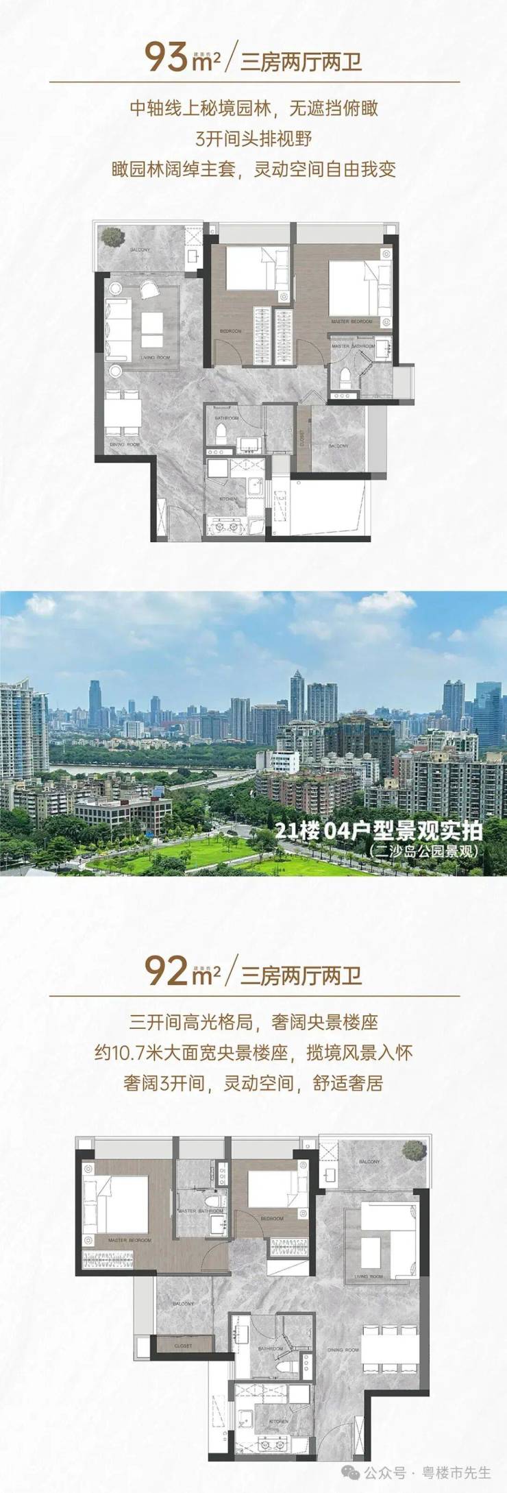 - 景观视野:北向户型可直面广州塔,俯瞰珠江新城天际线;园林采用“新中式合院”布局,融合中心景观沙龙、下沉式庭院绿谷等,封藏城市地标景观。