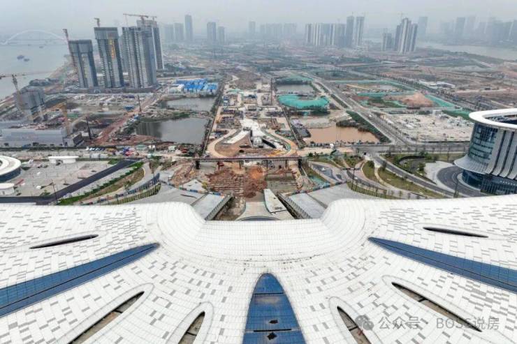 边规划有 54 万㎡TOD 商业中心、约 20 万㎡地下综合空间商圈,已经封顶,未来将涵盖超五星酒店、购物中心、餐饮等业态。
