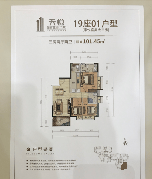 01户型(添悦盛美大三房) 101.45方 三房两厅两卫