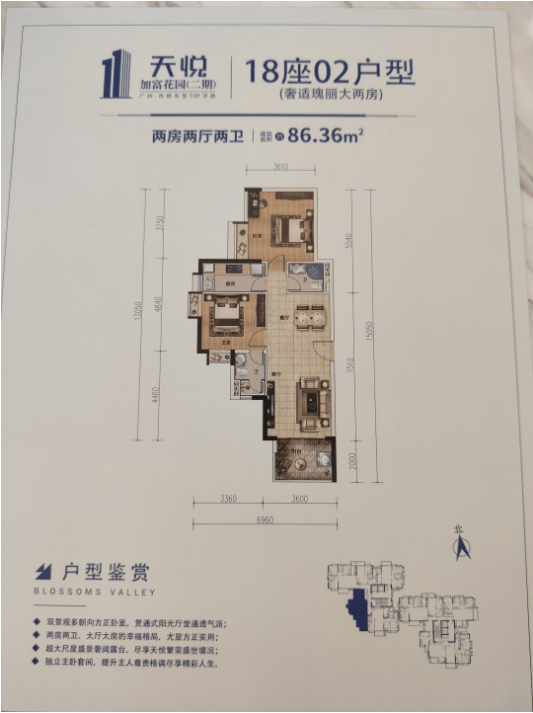 02户型(奢适瑰丽大两房) 86.36方 两房两厅两卫