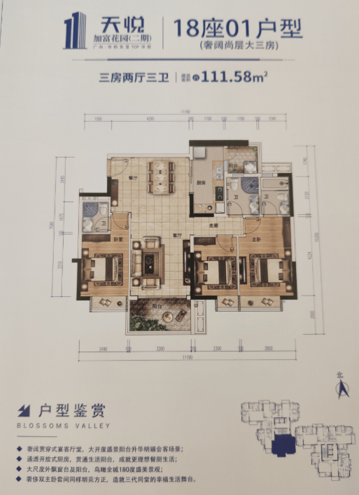 01户型(奢阔尚层大三房) 111.58方 三房两厅三卫