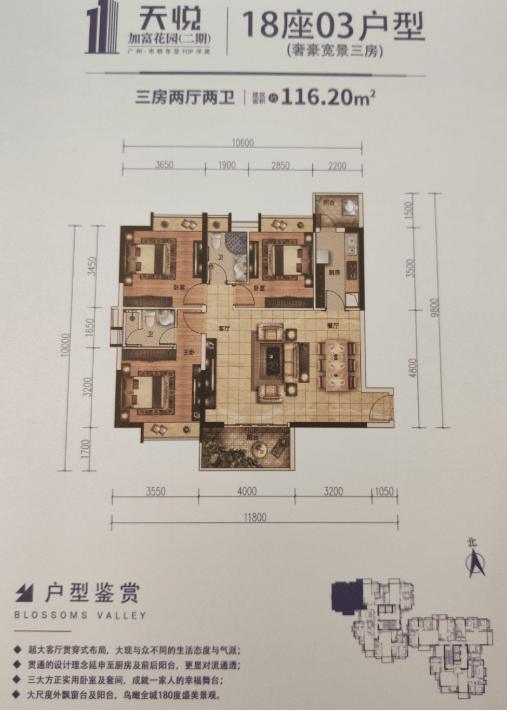 03户型(奢豪宽景三房) 116.20方 三房两厅两卫