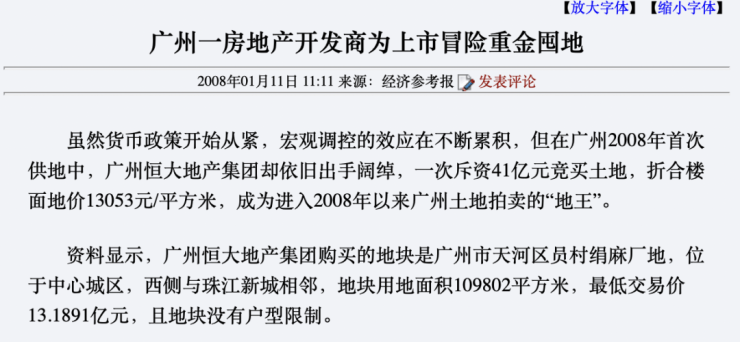其实,这不是绢麻厂地块首次拥有地王头衔,早在2008年1月,恒大以41亿天价竞得员村绢麻厂地块时,它就已经是天河地王。