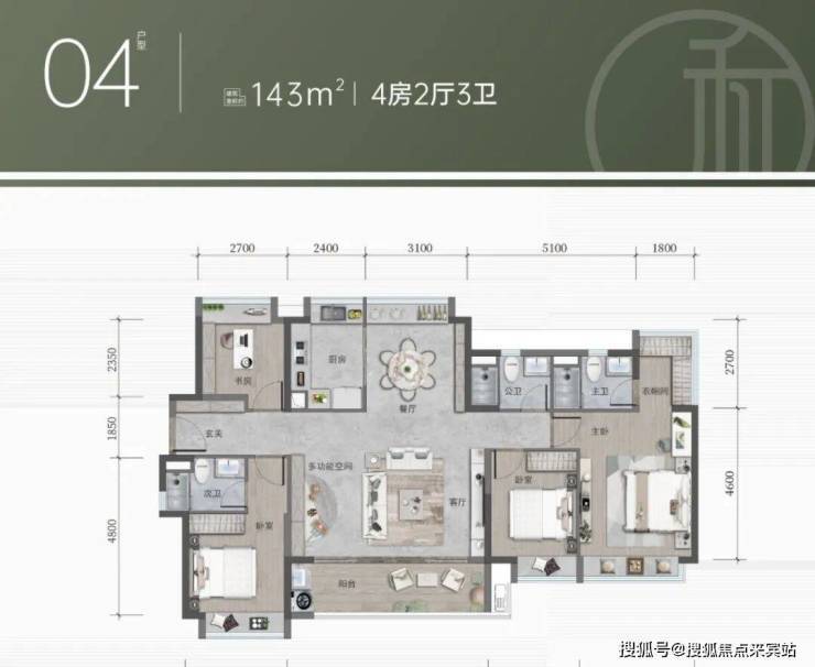 多样化的居住选择项目主打高层住宅,提供从107平方米到143平方米不等的四房户型,适合不同家庭结构的需求。每个户型均经过精心设计,注重空间利用效率与居住舒适度,精装修交付,省去了业主装修的烦恼。