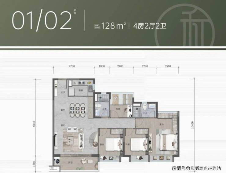 【产品面积】高层107 - 143㎡四房;