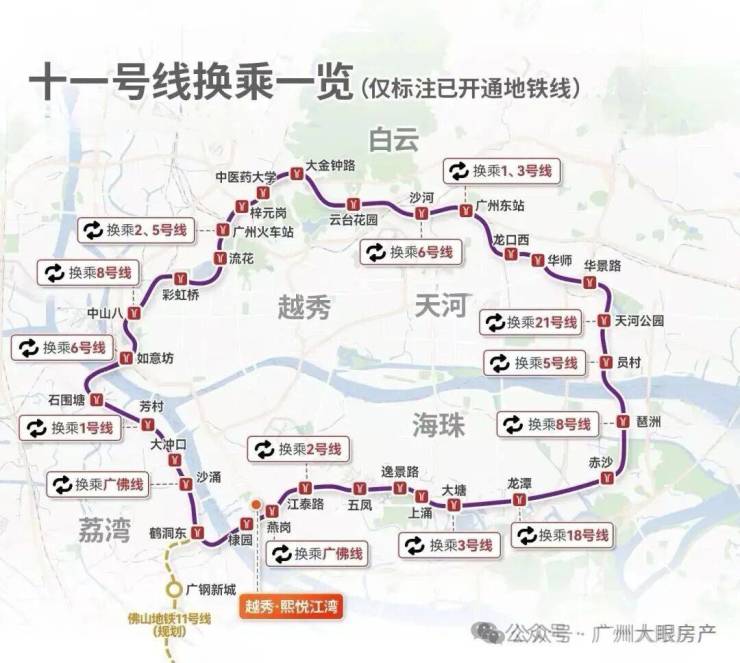 周边拥有双地铁:“换乘之王”广佛线燕岗站约400m(百度地图直线距离),广州首条黄金环城线11号线棣园站约250m(百度地图直线距离),直接打通琶洲、天河、海珠西和荔湾等区域,业主去哪都方便,7站南站、7站琶洲,轻松链接全城,虹吸广佛优质资源。