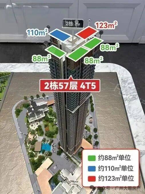 项目首推2栋,4T5,货量约260套,建面约88-110-123㎡三四房。