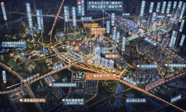 与长隆度假区&万象系(规划中)/K11/时代等商业体形成无缝衔接