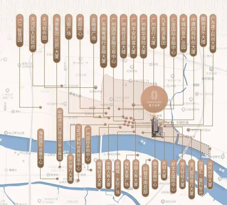 啟江42序AVANTURA地处广州国际金融城东区起点位,这里不仅是科技金融、创新金融及总部经济的重要集聚区,更是全球都会的核心地带之一。该项目不仅享有珠江至贵一英里的独特地理位置,还拥有便捷的交通系统,包括地铁、城际列车、磁悬浮列车以及值机大厅等复合交通枢纽,使居民能够与世界无界畅连。