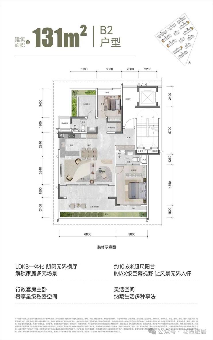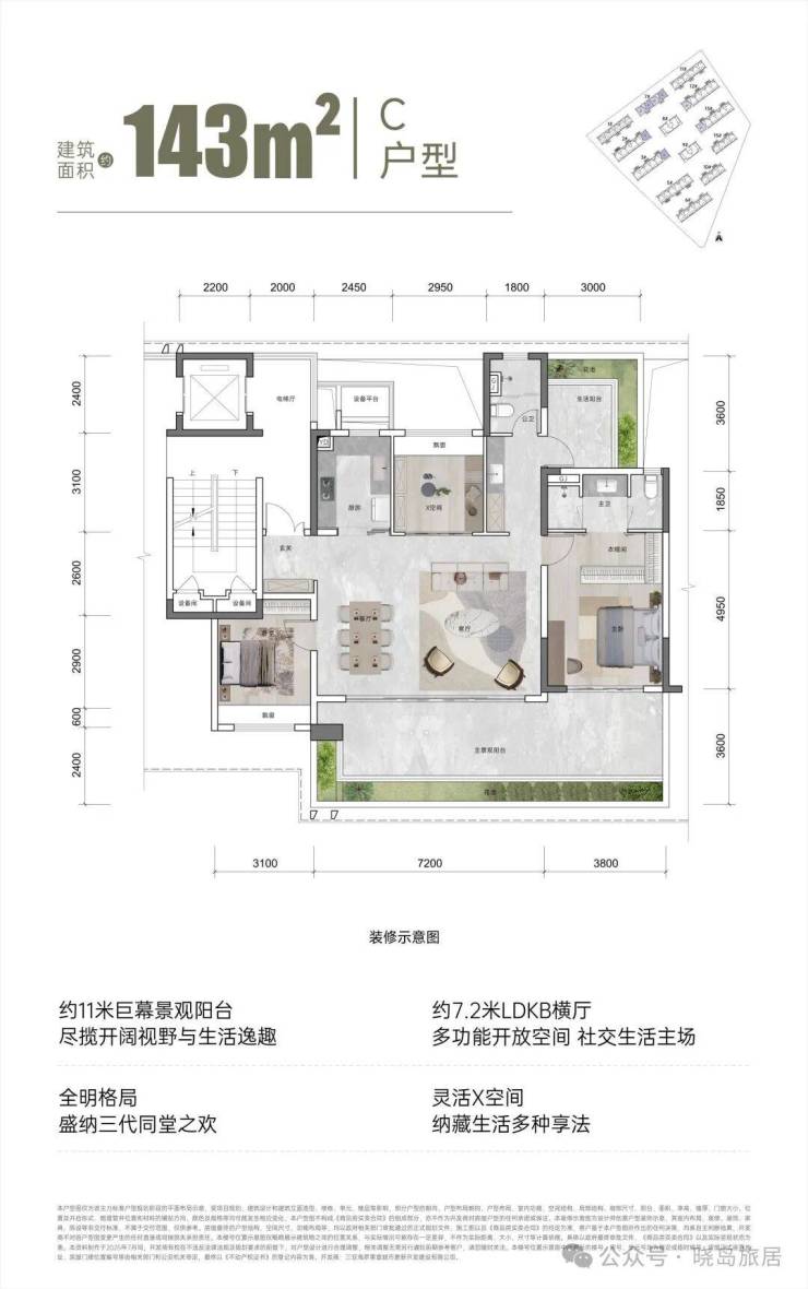 【面积区间】建筑面积约110㎡、131㎡、143㎡、195㎡