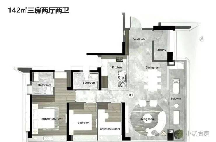 品越华府的户型方正,大阳台、飘窗、专梯一个不少。