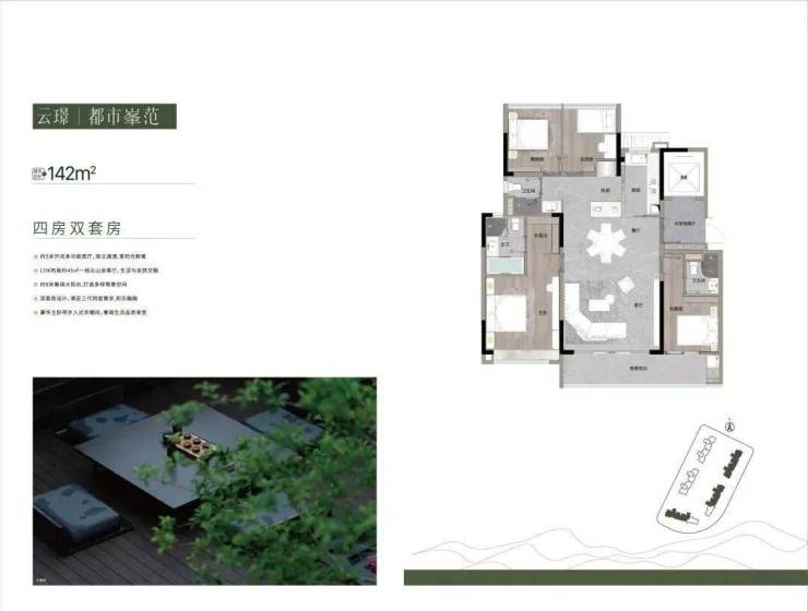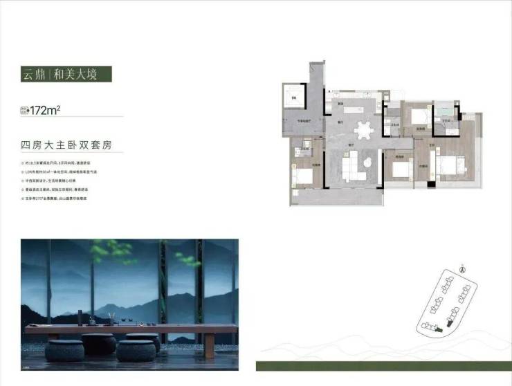 专梯专户山居环幕MAX平层,视野开阔,揽一线云山美景,低17展低密居件环境非常舒适,仅319户。