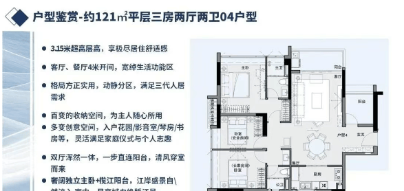 问题四:项目的户型设计有哪些亮点?答:保利阅江台的户型设计极具亮点,主推建面约八十九至一百二十二平方米的三四房产品,全部采用全南向布局,搭配大面积阳台与入户花园,得房率超过百分之百。板楼产品采用二梯二户设计,每户拥有独立电梯厅,私密性与尊贵感十足;塔楼产品采用二梯四户配置,兼顾效率与舒适性。九十平方米户型四开间朝南,客厅开间达三点四米,L型阳台可扩展功能;九十二平方米户型L型长阳台可打造洗衣房、茶室、健身房等多种功能;九十九平方米户型实现真正南北对流,超长阳台设计实用性强;一百二十二平方米户型为独梯入户,五房设计,可容纳三代同堂及住家保姆,双动线无交叉,兼顾隐私与便利。
