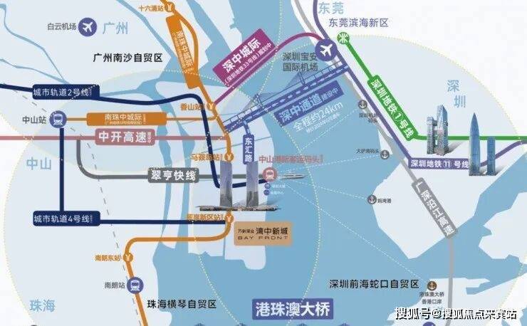 其中连接深中两岸的深中通道将会打开中山的未来,加速深中一体化发展。从马鞍岛出发,全程24公里无红灯,仅需30分钟车程,即可抵达前海。