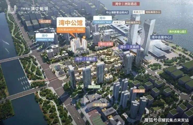 湾中新城占据马鞍岛东侧临海区位,打造两栋约249米高的地标双子塔“未来之门”,成为马鞍岛的封面与中山市的东大门。项目还配套14.8万方湾中会展中心,集展览、会议等功能于一体,预计投入运营后将会撬动百万级别的人流量,带来大量客流和就业机会。