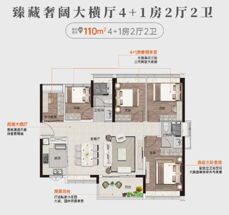 建面约110㎡丨单边位对流四房两卫