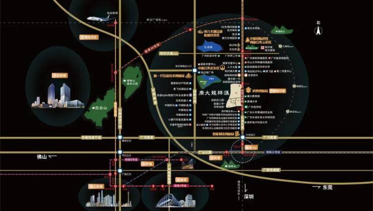 康大龙祥汇雄踞知识城最核心地段,三公里繁华半径内,荟聚极核发展资源,集休闲娱乐、医疗教育等醇熟配套于一体。旺村、汤村双地铁口上盖,5站到天河。知识城主干道九龙大道,约2公里接驳广河高速,瞬达广州主城及粤港澳大湾区主要城市。