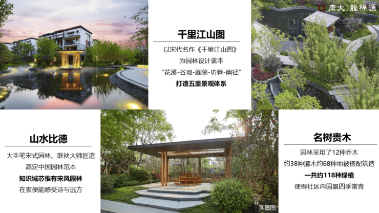 【康大龙祥汇】位于广州黄埔中新知识城,毗邻旺村地铁站,是知识城芯约99万㎡低密高阶人文大城的标杆之作。总占地面积约60万㎡,一期总建筑面积约10万㎡,拥有612户主力产品,包括四房洋房现楼、合院联排和多功能商墅。项目以宋代赵佶《十八学士图》为灵感,融合中国传统文人生活元素,在社区园林中打造“两苑+两轴+十景”景观,营造出雅致的居住环境。