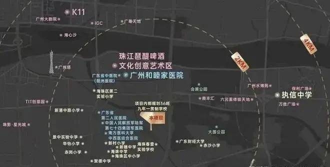 2公里范围内分布有 海珠中学、海珠小学、赤沙小学、广东省轻工职业技术学校(琶洲校区)、广东省海洋工程职业技术学校。